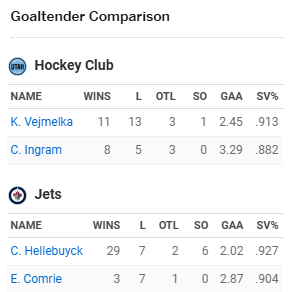 It is still a bit early to get any official confirmation of what players will be on the ice tonight, but there are a few things we do know. For one, Utah’s starting goaltender for the contest will most likely be Connor Ingram (.882%) because starter Karel Vejmelka (.913%) was in net when the Hockey Club shut out the Minnesota Wild (4-0) last night. Ingram held Winnipeg to 2 goals in their last meeting, so I am not sure how much of an advantage that will end up being.