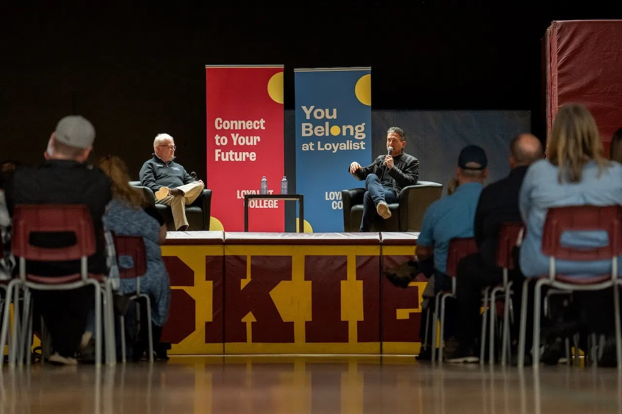 Moderated by Loyalist College President Mark Kirkpatrick, the conversation traced Ryan’s journey from professional hockey to acting, writing and comedy, and the role post-secondary education played in helping him reimagine his path.