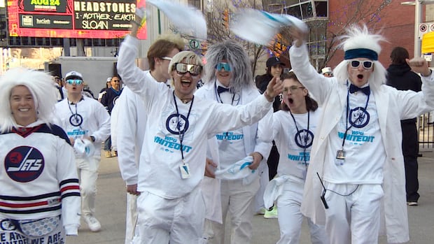 Whiteout street parties will take place before and during every Jets home playoff game, transforming Donald Street into a sea of thousands of white-clad fans, dressed in hockey jerseys and everything else from body suits and wedding dresses to polar bear costumes, Elvis jumpsuits, Santa beards and anything else that fits the mood.