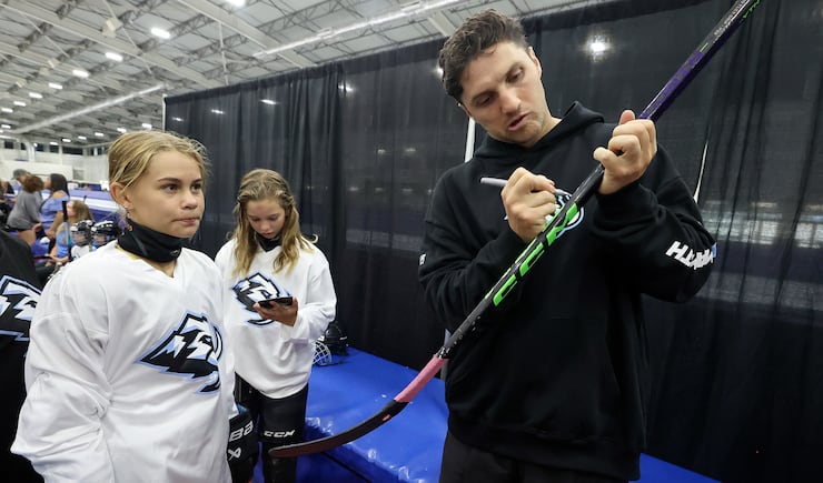 Utah Mammoth forward Alexander Kerfoot skates with girls during Girl’s Youth Hockey Day at the Utah Olympic Oval in Kearns on Wednesday, July 30, 2025. | Kristin Murphy, Deseret News A young participant skates during Girl’s Youth Hockey Day at the Utah Olympic Oval in Kearns on Wednesday, July 30, 2025. | Kristin Murphy, Deseret News Utah Mammoth forward Alexander Kerfoot skates with girls during Girl’s Youth Hockey Day at the Utah Olympic Oval in Kearns on Wednesday, July 30, 2025. | Kristin Murphy, Deseret News Utah Mammoth forward Alexander Kerfoot signs a hockey stick for Kenidi McQuarrie during Girl’s Youth Hockey Day at the Utah Olympic Oval in Kearns on Wednesday, July 30, 2025. | Kristin Murphy, Deseret News Mellissa Channell-Watkins, Professional Women’s Hockey League Vancouver defender, coaches during Girl’s Youth Hockey Day at the Utah Olympic Oval in Kearns on Wednesday, July 30, 2025. | Kristin Murphy, Deseret News Janey Hjelmstad helps Colette Hjelmstad put her helmet on for Girl’s Youth Hockey Day at the Utah Olympic Oval in Kearns on Wednesday, July 30, 2025. | Kristin Murphy, Deseret News Utah Mammoth forward Alexander Kerfoot helps Macy Sorensen adjust her helmet during Girl’s Youth Hockey Day at the Utah Olympic Oval in Kearns on Wednesday, July 30, 2025. | Kristin Murphy, Deseret News Utah Mammoth forward Alexander Kerfoot signs an autograph for Sutton Gledhill, 5, during Girl’s Youth Hockey Day at the Utah Olympic Oval in Kearns on Wednesday, July 30, 2025. | Kristin Murphy, Deseret News Josh Hjelmstad helps Wendy Hjelmstad put her skates on for Girl’s Youth Hockey Day at the Utah Olympic Oval in Kearns on Wednesday, July 30, 2025. | Kristin Murphy, Deseret News Hilary Knight, Professional Women’s Hockey League Seattle forward and captain of the United States women’s national hockey team, coaches girls during Girl’s Youth Hockey Day at the Utah Olympic Oval in Kearns on Wednesday, July 30, 2025. | Kristin Murphy, Deseret News Abigail Parker tries to get the puck past Utah Mammoth forward Alexander Kerfoot during Girl’s Youth Hockey Day at the Utah Olympic Oval in Kearns on Wednesday, July 30, 2025. | Kristin Murphy, Deseret News Hilary Knight, Professional Women’s Hockey League Seattle forward and captain of the United States women’s national hockey team, coaches girls during Girl’s Youth Hockey Day at the Utah Olympic Oval in Kearns on Wednesday, July 30, 2025. | Kristin Murphy, Deseret News