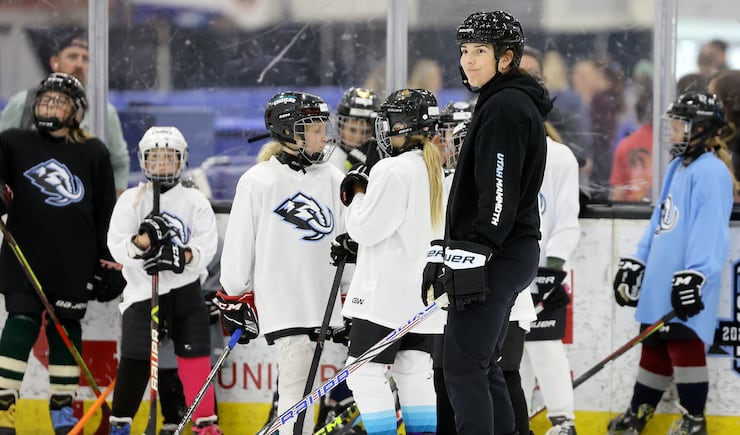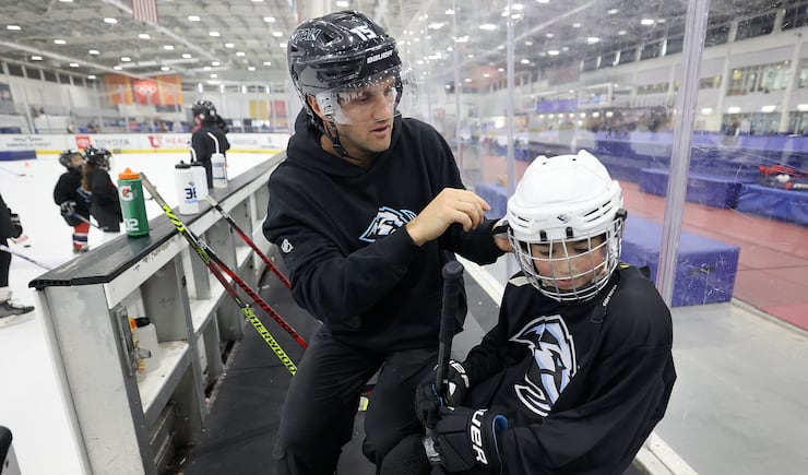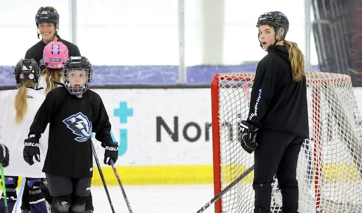“It’s just so fun,” she said after helping out with back-to-back on-ice sessions with girls ages 6-14 at Mammoth Week — a program designed to inspire the next generation of Crosbys, Knights, Cooleys and Bilkas. “You remember when you were that age and how important these moments were.”