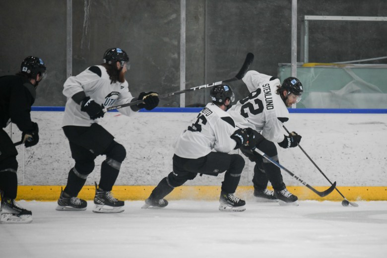 The hockey club returned to town Thursday and Friday and spent time in town hiking, team building and practicing, again at the Park City Ice Arena. While both days were originally scheduled as practice days, with players staying overnight Thursday, the coaching staff, led by head coach André Tourigny, decided Thursday would be better spent exploring town and team building. Friday, the players and coaches were back on the ice and ran through various drills.