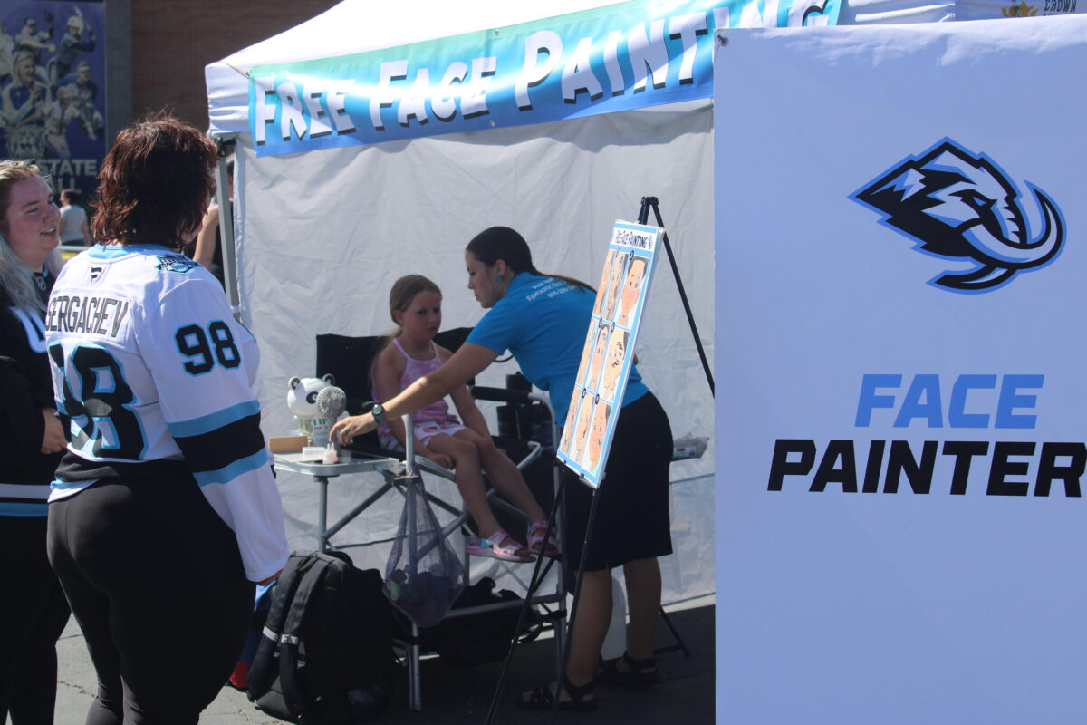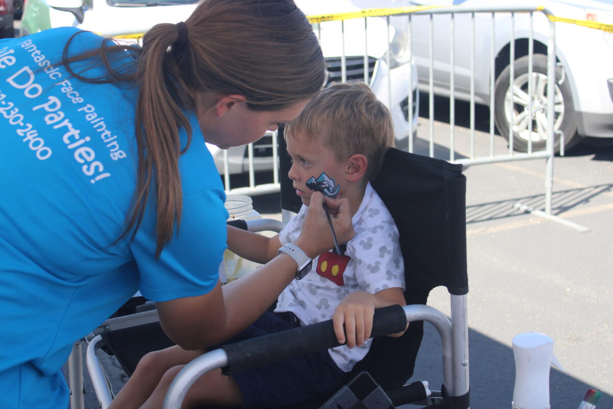 Jack, 4 of Plain City, has his face painted at the Utah Mammoth Week fan fest on Thursday, July 31, 2025, at the Weber County Sports Complex in Ogden.