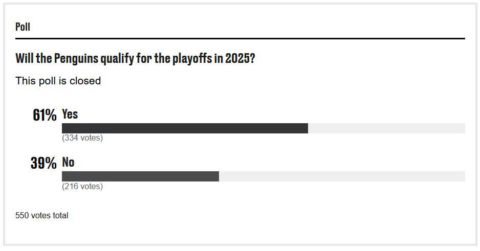 It’s the offseason, it’s Friday, you know what that means. Or maybe you forgot, if so fear not the Friday Polls are back. We start today by looking back at the Penguins’ 2024-25 season. It may feel like a forever ago that many or most accepted that the Pens were not a very good team, but there was still a lot of optimism as little as seven months ago about the team’s prospects.