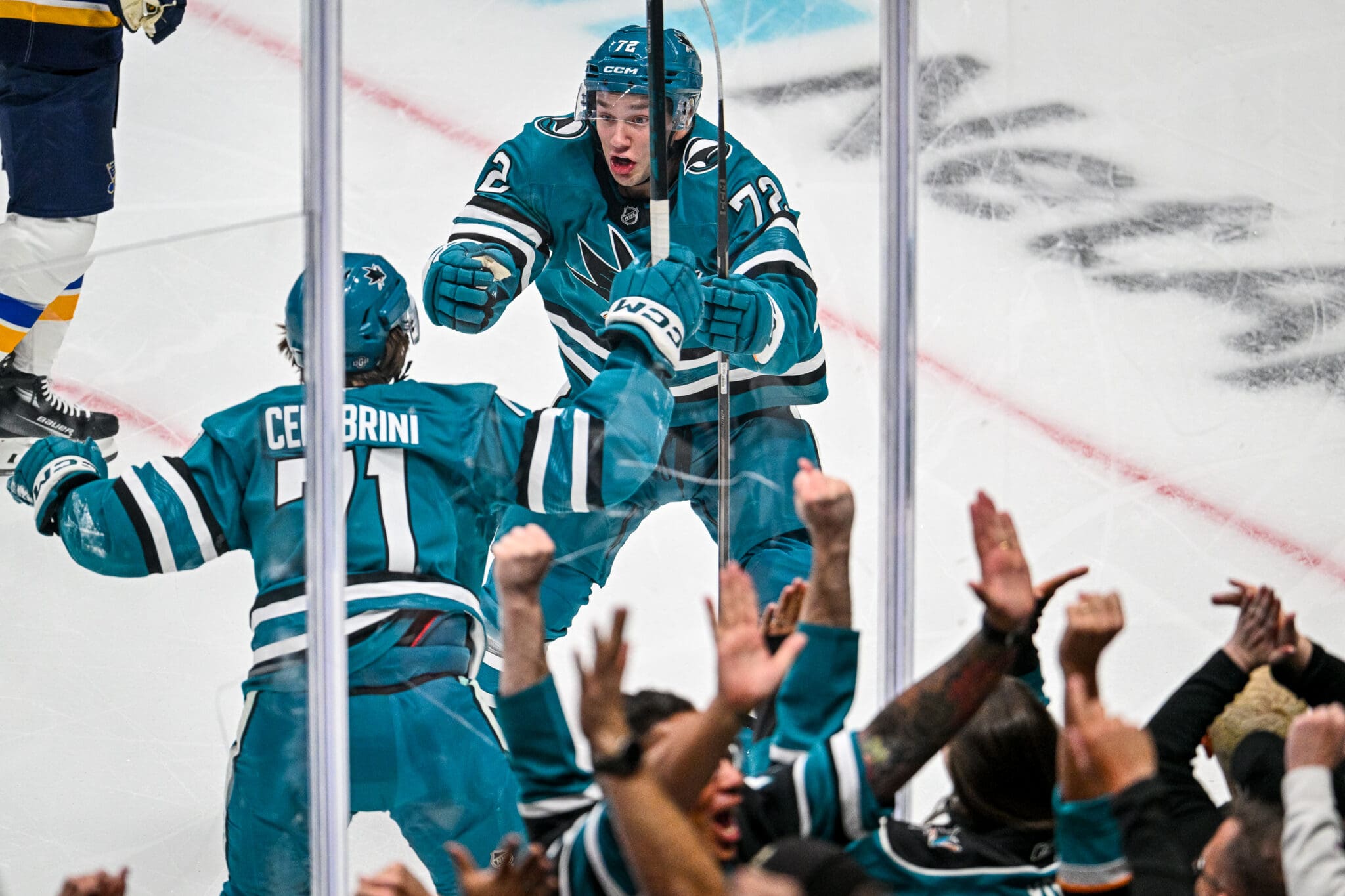 Oct 10, 2024; San Jose, CA, USA; during Home Game vs St Louis Blues at SAP Center. Photo: Hockey Shots/Dean Tait