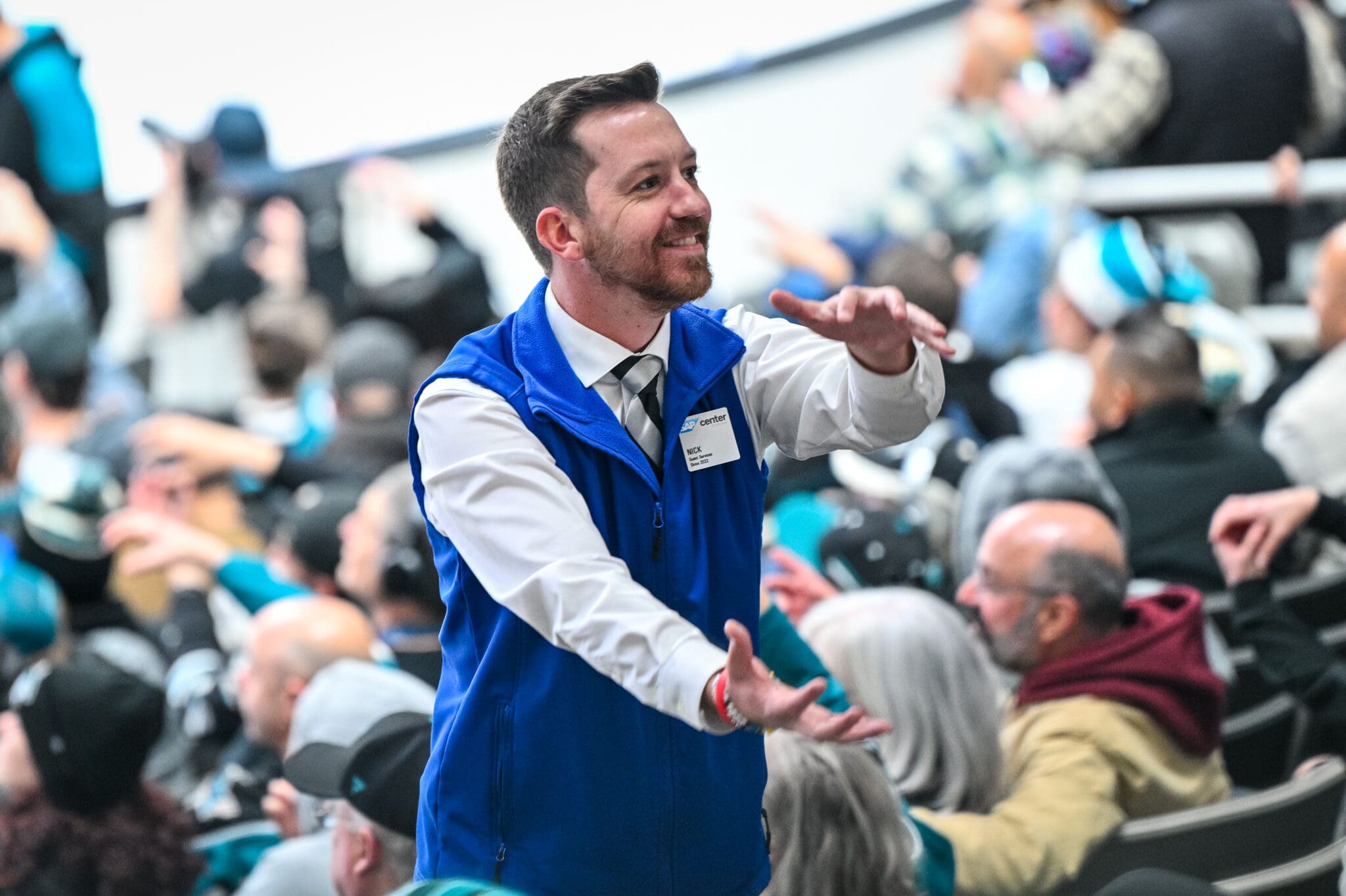 Tait: “Nick in Section 114. The last few seasons have been challenging for the Sharks, including attendance at home games. Everyone who works at SAP Center is part of the fan experience and Nick is one of the best! Things can get predictable when shooting over 45 games each season. So, I try to get something different each game. In this photo, Nick is encouraging his section during a power play.”