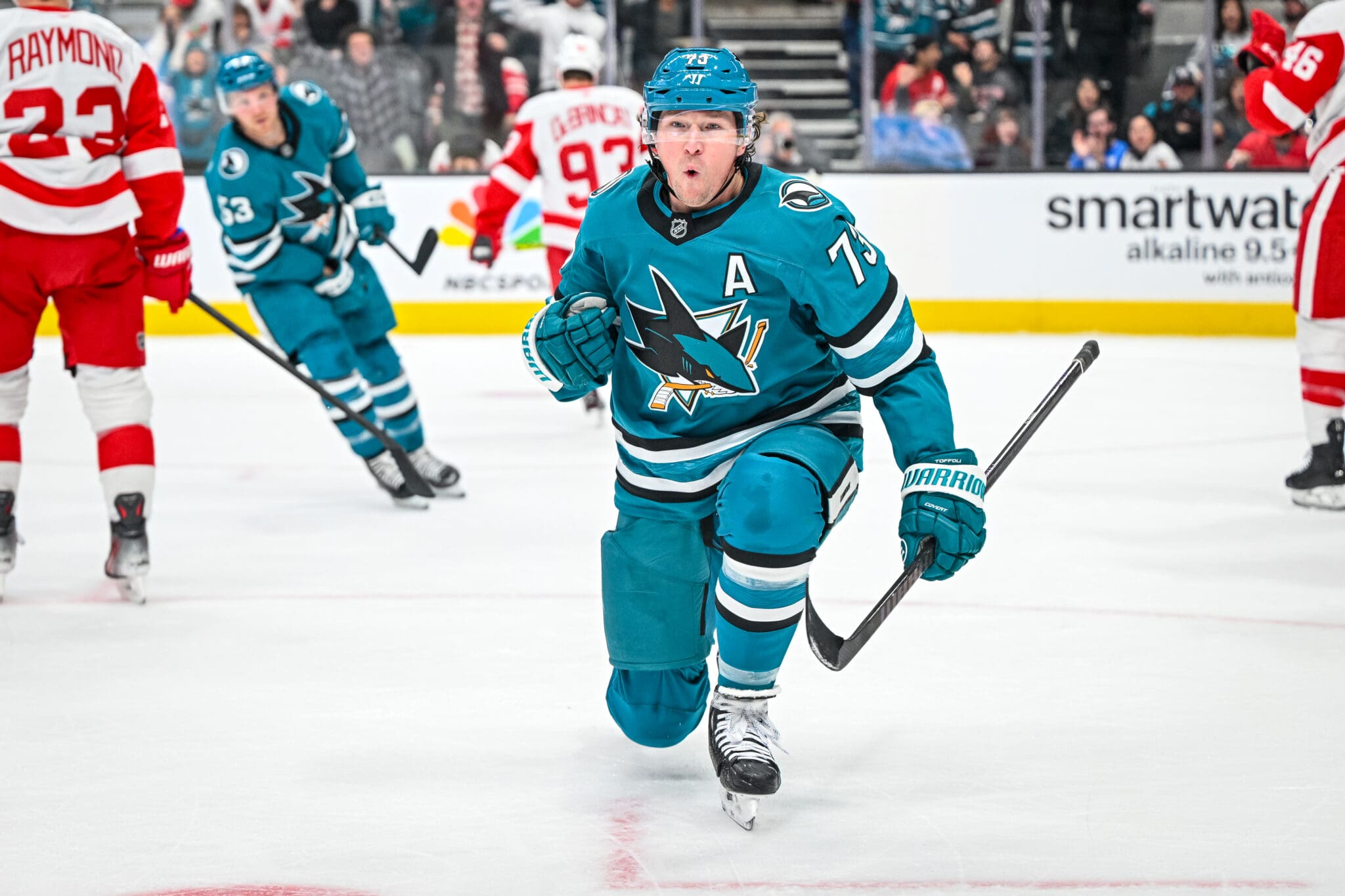 Nov 18, 2024; San Jose, CA, USA; during Detroit Red Wings at San Jose Sharks at SAP Center. Photo: Hockey Shots/Dean Tait