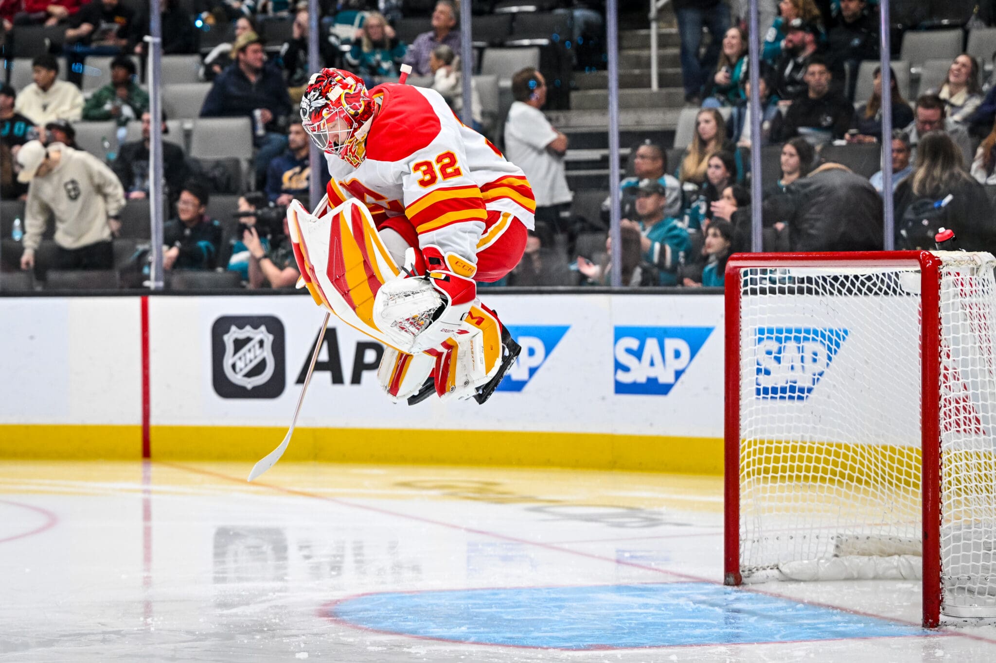 Dec 28, 2024; San Jose, CA, USA; during Calgary Flames at San Jose Sharks at SAP Center. Photo: Hockey Shots/Dean Tait