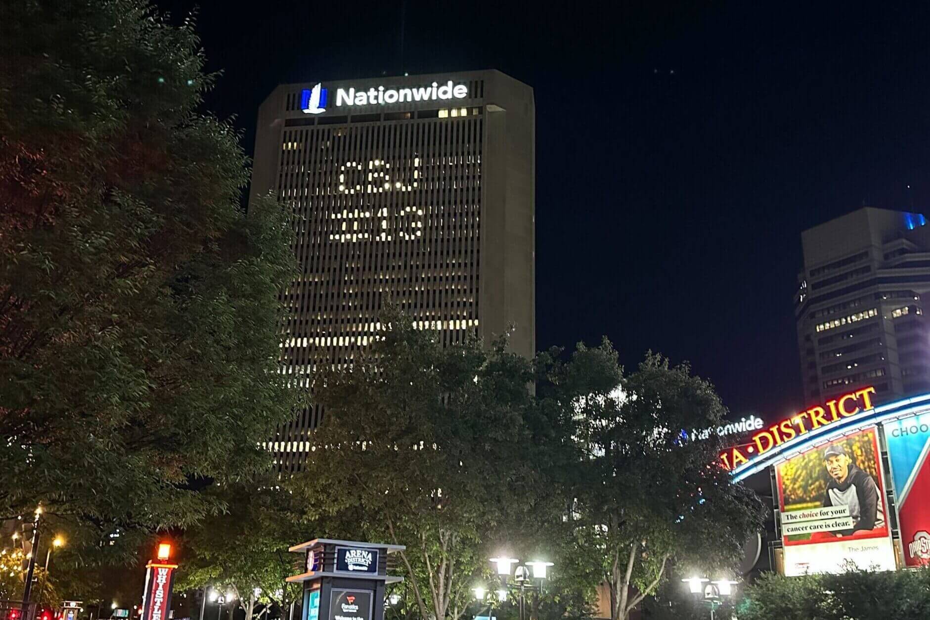 Fans stood motionless for a few minutes after the program ended, their candles now melted down to a nub. As they turned to leave, the headquarters of the Nationwide insurance company — a high-rise building just across the street from the arena — had “CBJ #13” illuminated on the side of the building.