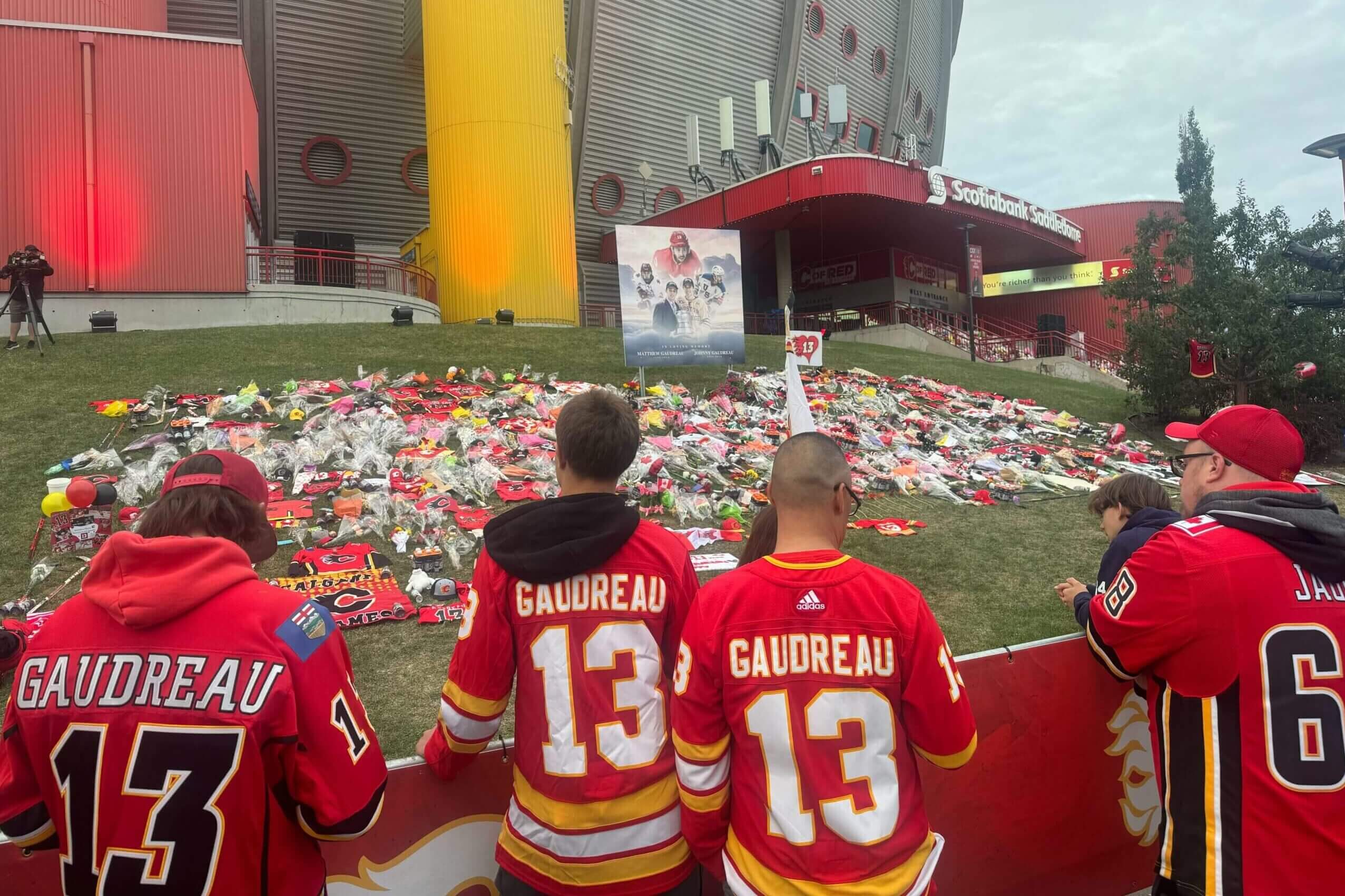 The Flames will keep the fan-made memorial outside of the Saddledome for the next 13 days as part of the team’s observance of the memory of Johnny and Matthew.