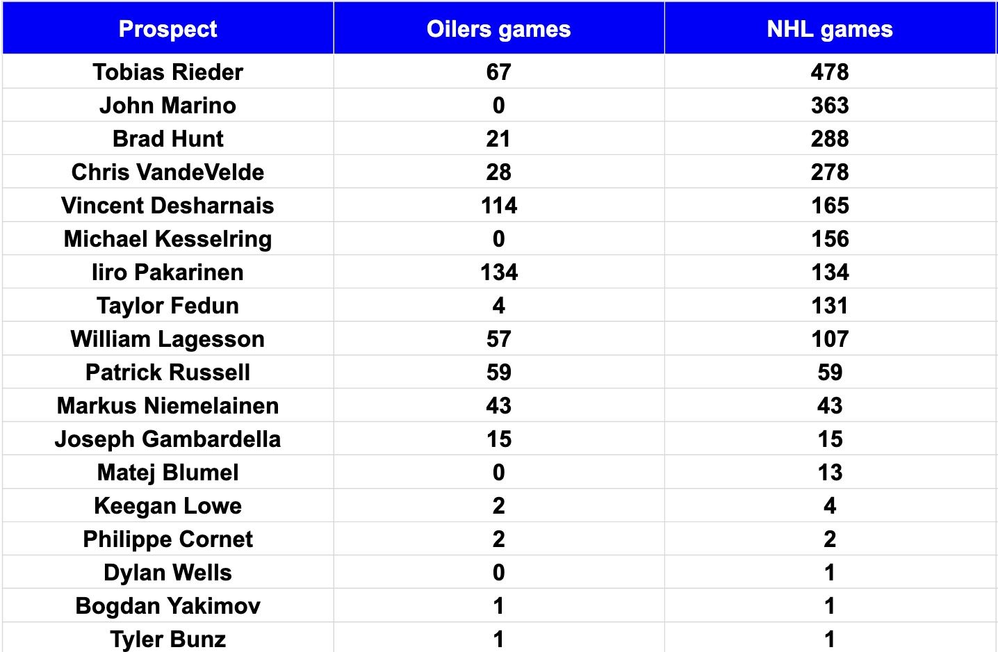If Kesselring sticks as a Top 4 d-man in Buffalo, that would be two out of 80 of Edmonton’s bottom end prospects making it as Core 12 NHLers.