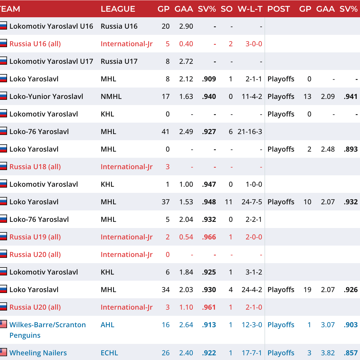 Murashov wasn’t one of the goalies on my 2022 draft board but he was among the goalies I would have considered drafting and has played really well (that’s an understatement) in the three years since. Before his successful jump to North America this season, he established himself as one of the best goalies in the MHL and impressed in spot starts in the KHL. He also played on the Russian Hlinka Gretzky Cup team that won the 2021 gold medal.