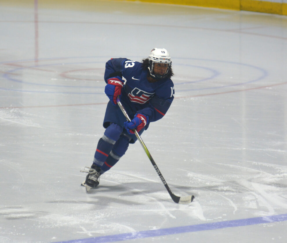 Team USA’s Chyna Taylor skates with the puck during Wednesday’s U18 Women’s Rivalry Series against Canada at the Olympic Center’s 1932 Jack Shea Arena in Lake Placid.