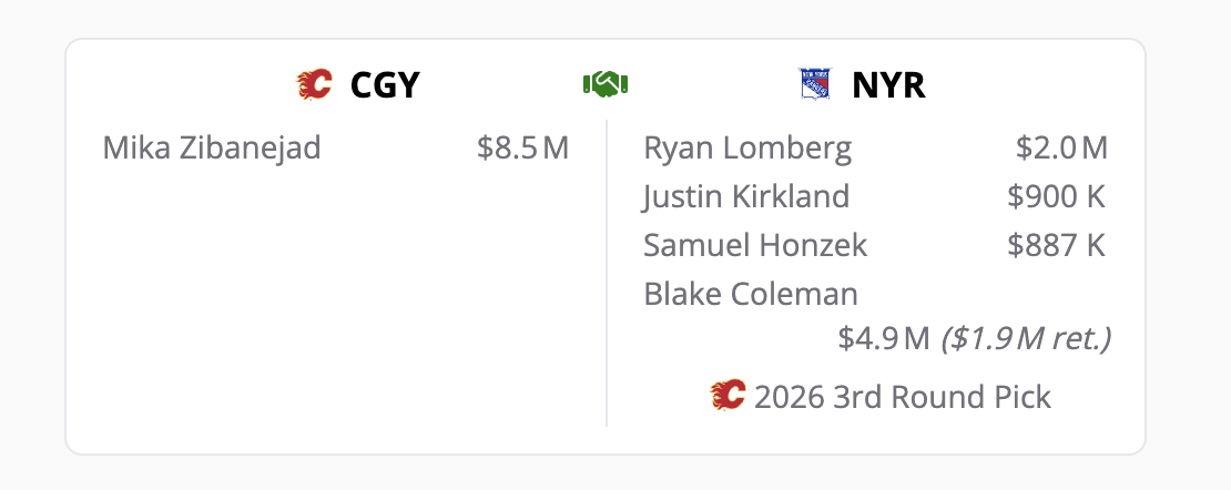 This is one of those contracts that a rebuilding team takes on. Mika Zibanejad hasn’t been the player he once was, and it feels as if the New York Rangers are over it. You’re essentially clearing four roster spots, giving this next wave of young players a true shot at making the roster. Do I think the Rangers should throw in a pick? Yes, more than likely. I’m sure it would go over well, and there would be a very normal reaction to this after years of discussing taking on cap dumps.