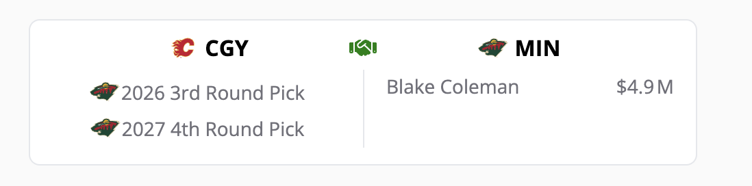This is another trade that addresses different needs. Blake Coleman is an excellent trade chip that I think the Flames should explore. Granted, it is a bit difficult to do, considering he has a 10-team approved trade list. Coleman is on year five of six of his current deal and is still an effective member of the line up.