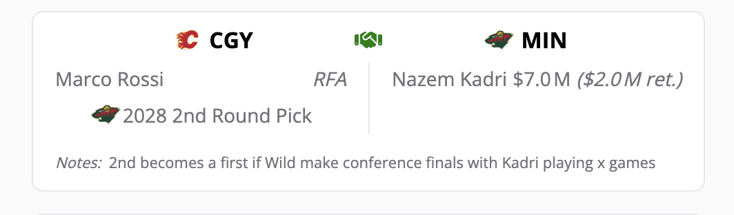 Nazem Kadri trade rumours have been flying around all summer. Is he going to the Montreal Canadiens? I used to be high on the Flames signing Marco Rossi. As the offseason has carried on, the rush of wanting deals to get done has worn off. Unfortunately, I’m not sure if Rossi would be worth the risk. If the Flames are going to trade Kadri, they should go out and fetch something that’s going to bring them closer to a true 1C.