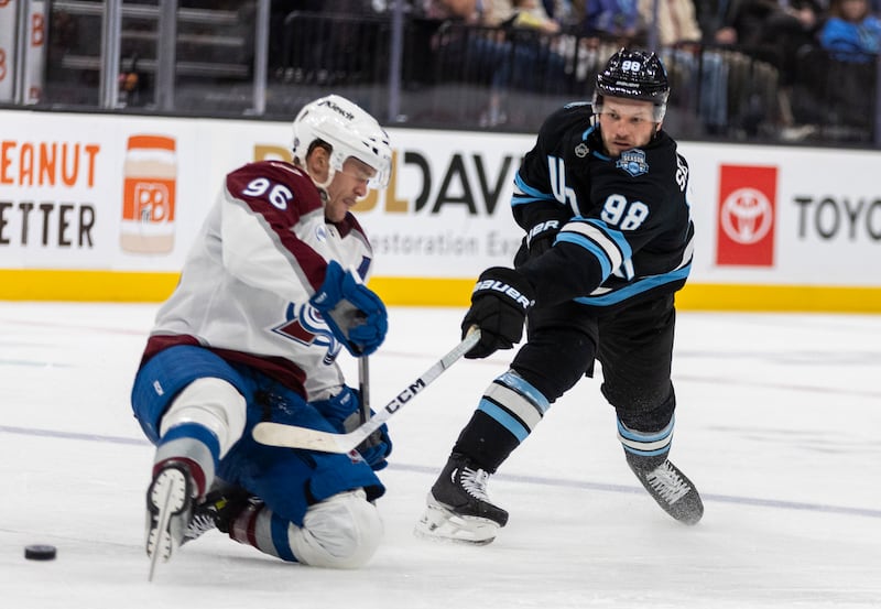 Mikhail SergachevJohn MarinoSean DurziNate SchmidtOlli MäättäIan ColeNick DeSimoneScott PerunovichMaveric LamoureuxDmitri SimashevUtah Hockey Club defenseman Mikhail Sergachev (98) shoots the puck past Colorado Avalanche right wing Mikko Rantanen (96) during a game at the Delta Center in Salt Lake City on Thursday, Oct. 24, 2024. The Utah Hockey Club lost to the Colorado Avalanche 5-1. | Brice Tucker, Deseret News Will the Utah Mammoth defensemen have any injuries to start the season?