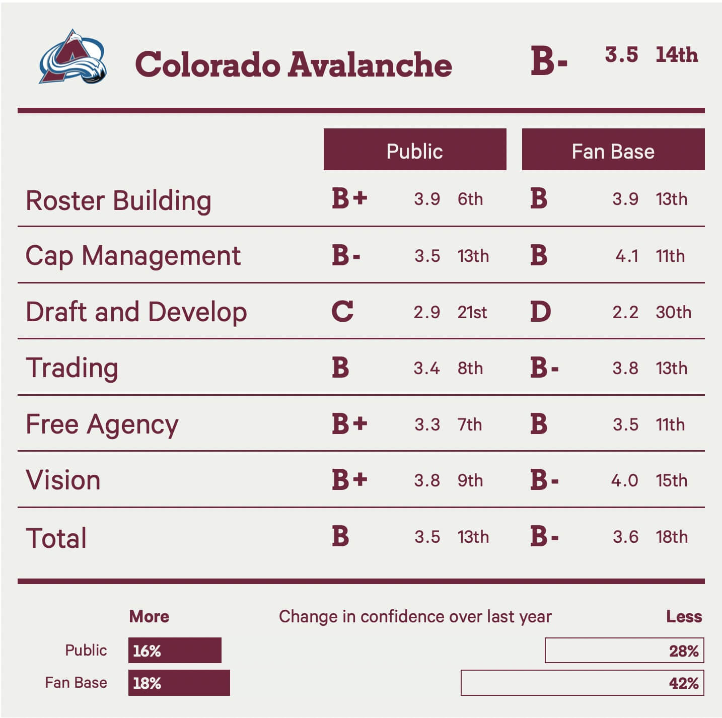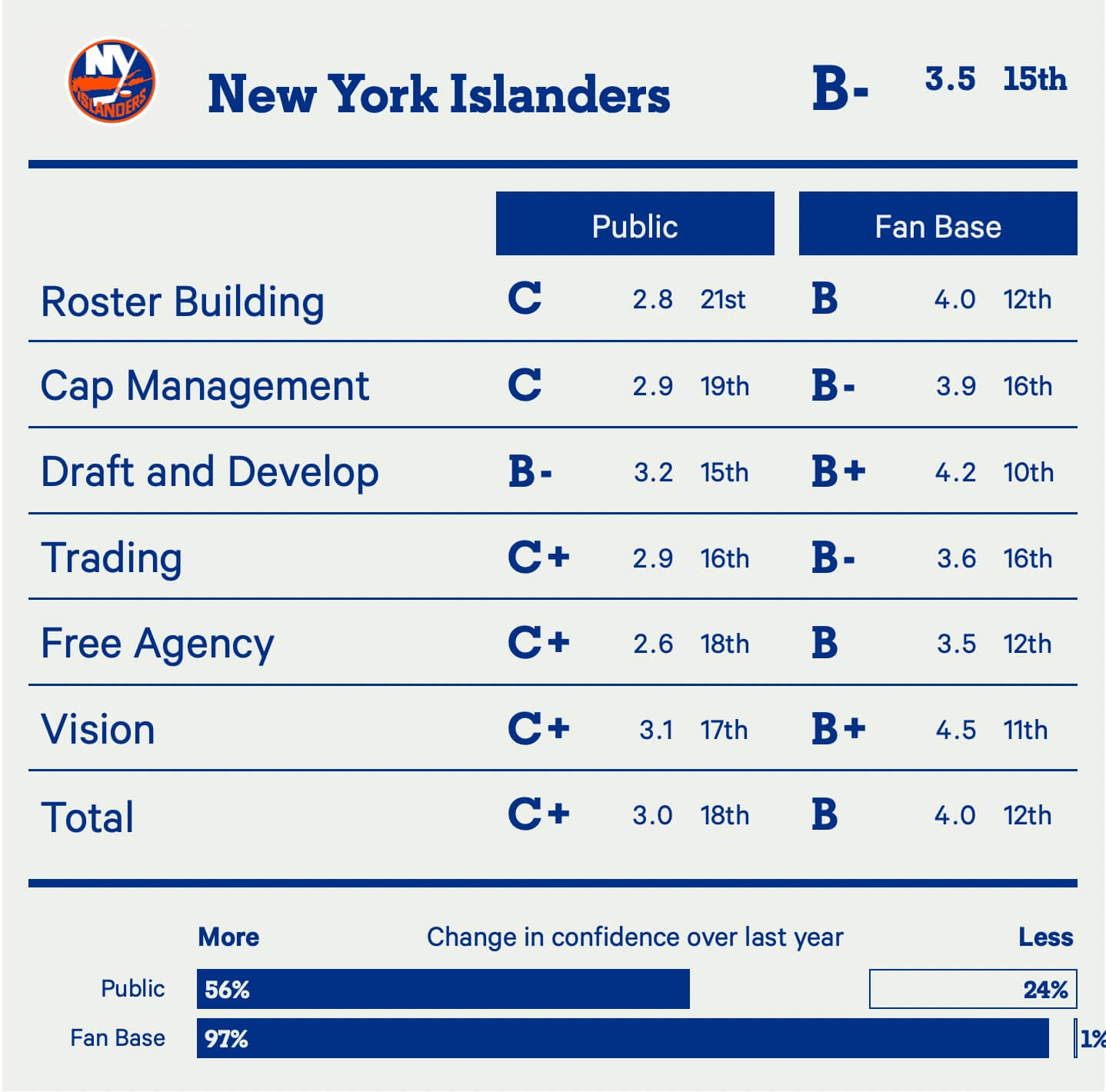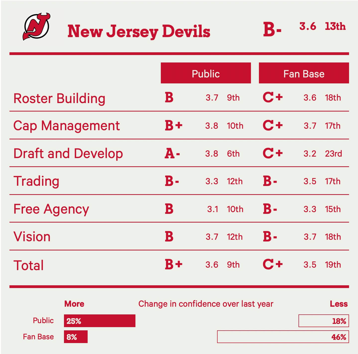According to the collective opinion of our well-informed subscribers, here’s how much confidence each team’s front office currently inspires.