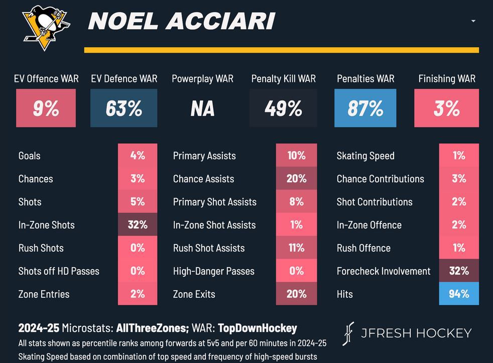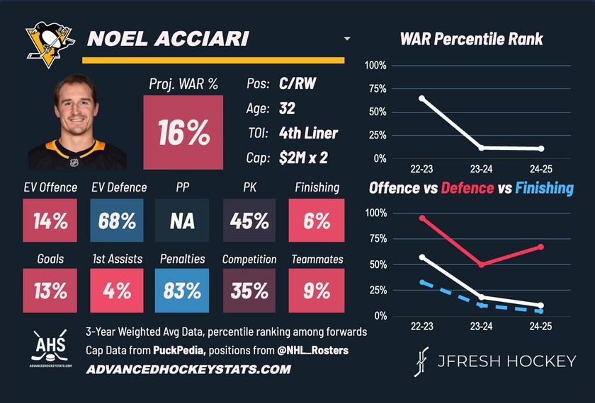 Ideally, for Acciari, he gives the Penguins more of the same: more hits, blocked shots, faceoff wins, and penalty kills. In a perfect world, he could serve as Pittsburgh’s 13th forward, but Acciari is likely viewed as a responsible, no-frills veteran by Kyle Dubas and whomever may become the next head coach of the Penguins.