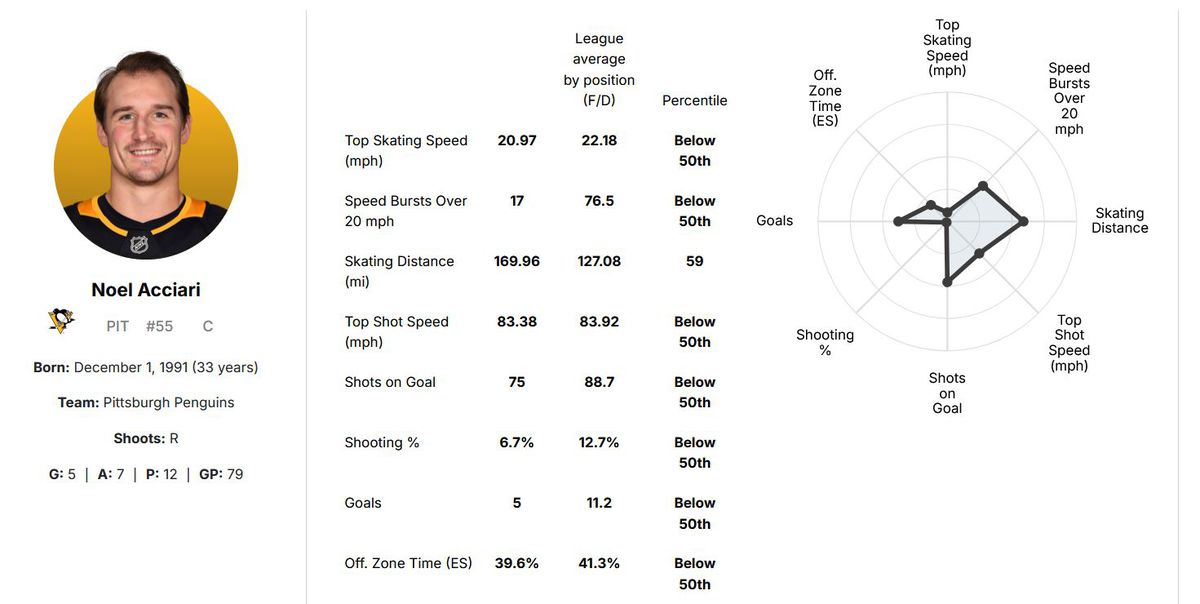 Whether deployed as the fourth-line center or right wing over the 79 games he played this season, Acciari remained a solid if underwhelming presence in the Pittsburgh Penguins’ forward group.