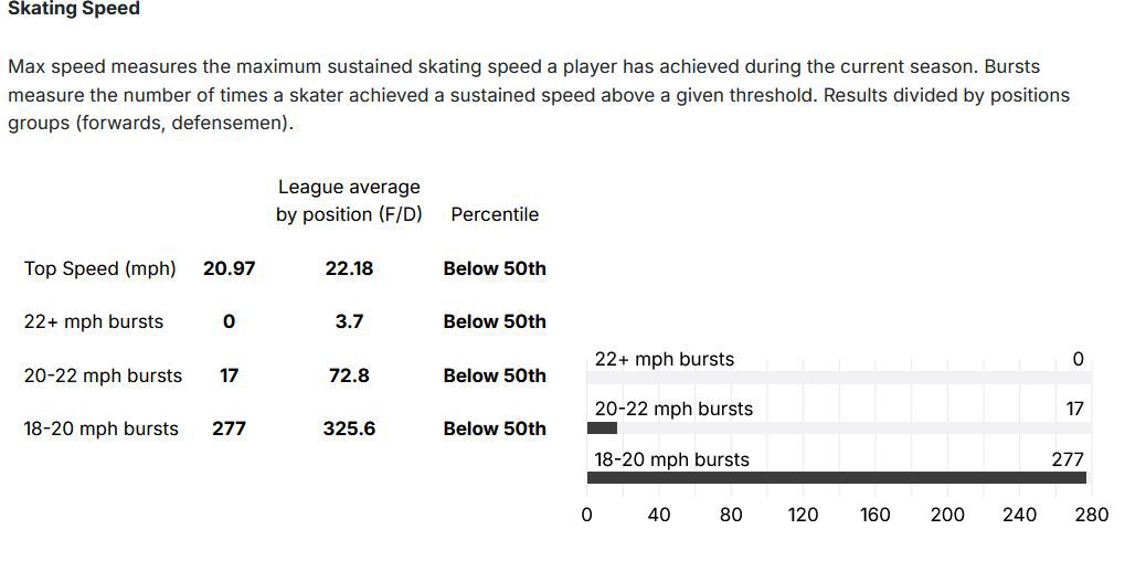 This is a pretty damning chart, Acciari simply doesn’t have the wheels any longer. Playing through pain and dealing with a bum hip for a portion of the season couldn’t have helped, but last year, he was a barely competent skater relative to a league that gets younger and faster every season.