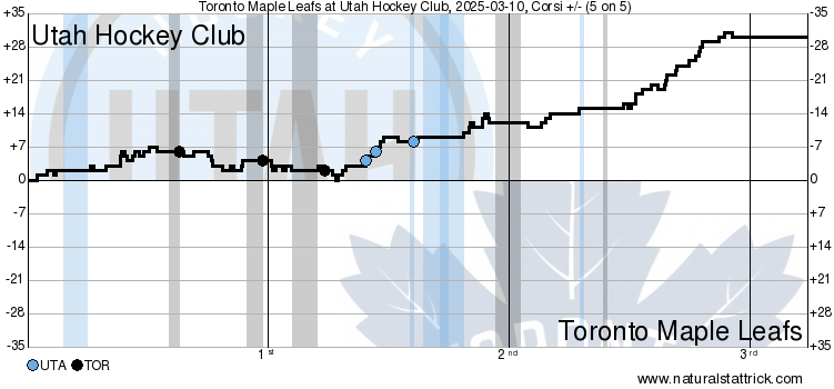 Tonight’s contest was really two games in one. For 28 minutes, the Maple Leafs generally controlled play, held a wide edge in shots, and led 3-0. Then, over the span of four minutes, Utah seized complete control of the game, erasing the Maple Leaf lead entirely, and from that point forward, they were decidedly the better team.