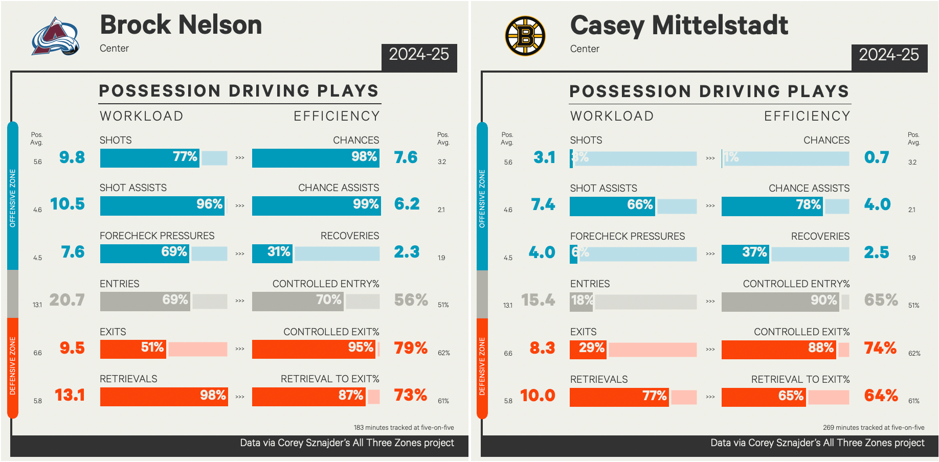 With Coyle, the best way to mitigate some effects of age-related decline is a change in usage. He shouldered too much in Boston on the second line. But at 3C in Colorado, he can focus on winning puck battles, playing sound defense and chipping in with secondary scoring.