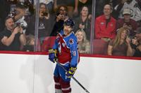 Avalanche alum Joe Sakic watches a shootout in overtime during the DU vs Avalanche alumni game at Magness Arena in Denver on Sunday, Aug. 24, 2025. (Stephen Swofford, Denver Gazette)
