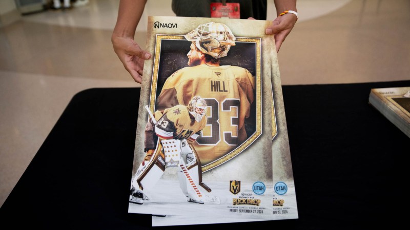 Goalie Adin Hill saw his first live game action since losing Game 7 against the Dallas Stars in the first round of the Stanley Cup Playoffs in April. Hill was the man of game from the marketing standpoint, as the Knights handed out Hill pins and posters.