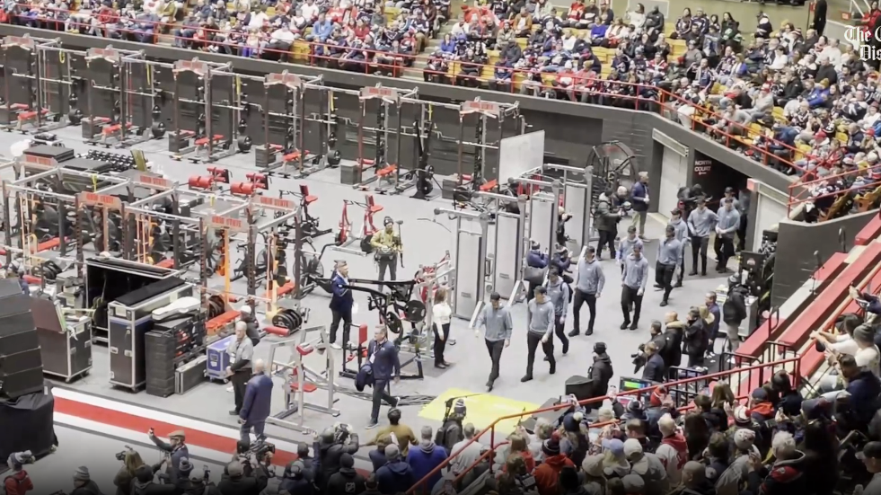 After most practices, the Blue Jackets line up in a corner at one end of the ice. Down at the other end is an empty net that a chosen shooter tries to hit from about 200 feet out. A goal gives the Blue Jackets one lap around the rink. A miss nets three.