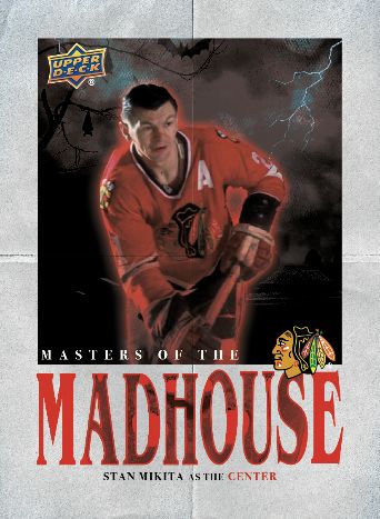 The Masters of the Madhouse checklist features players from throughout history who have made the arenas on Madison Street rumble. The Madhouse is a local nickname for Chicago Stadium, which operated from 1929-1994, and the United Center, home to the Blackhawks since 1995.