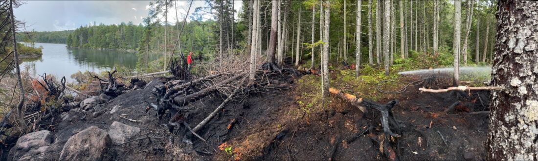 A Forest Ranger works on the Whitney Lake Fire in the West Canada Lakes Wilderness in Hamilton County. (Provided photo by NYSDEC)