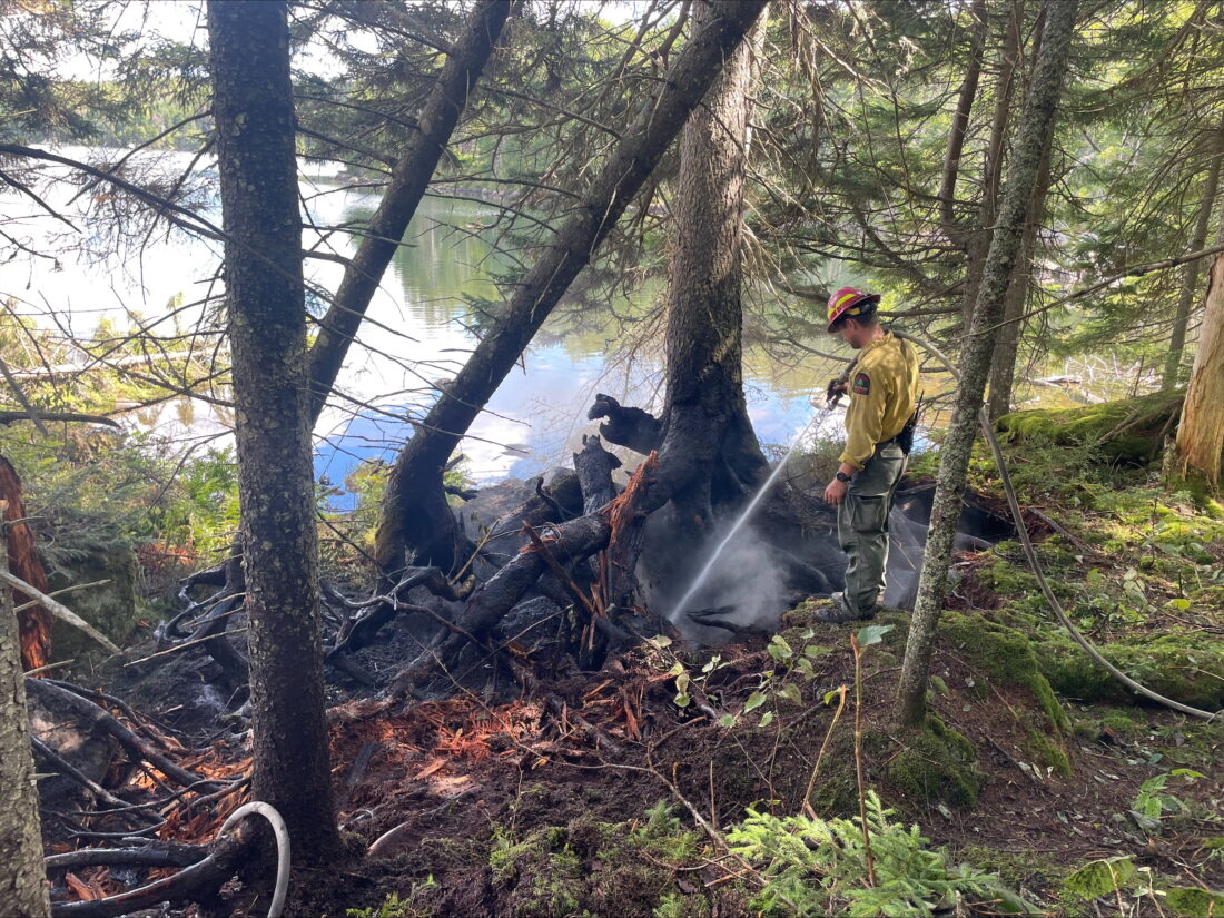 Wildland Fire: On Sept. 3 at 1:45 p.m., Forest Ranger Horn responded to Rocky Mountain for a report of an unattended campfire that spread to duff near the summit. The small fire was a three-to-four-mile hike into a remote, trailless peak. The following day, Rangers Martin and Stratton joined the efforts and determined the fire was 20 feet by 20 feet. Rangers removed hazardous trees from the fire area and used hand tools to expose underground heat in preparation for nighttime precipitation. Despite the rain, the fire grew to 20 feet by 30 feet. On Sept. 8, New York State Police Aviation was called in to assist with bucket drops. Fire crews eliminated all heat and smoke. The fire is now in patrol status and Rangers are monitoring.