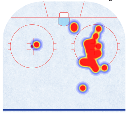 Olofsson is a left-handed shooter who has thrived playing on the right flank with the man advantage in his career. He scored five times in just 74 minutes on the power play with Vegas, and the heat map of his attempts shows exactly why he could be a good fit where Mikko Rantanen used to set up for the Avs.