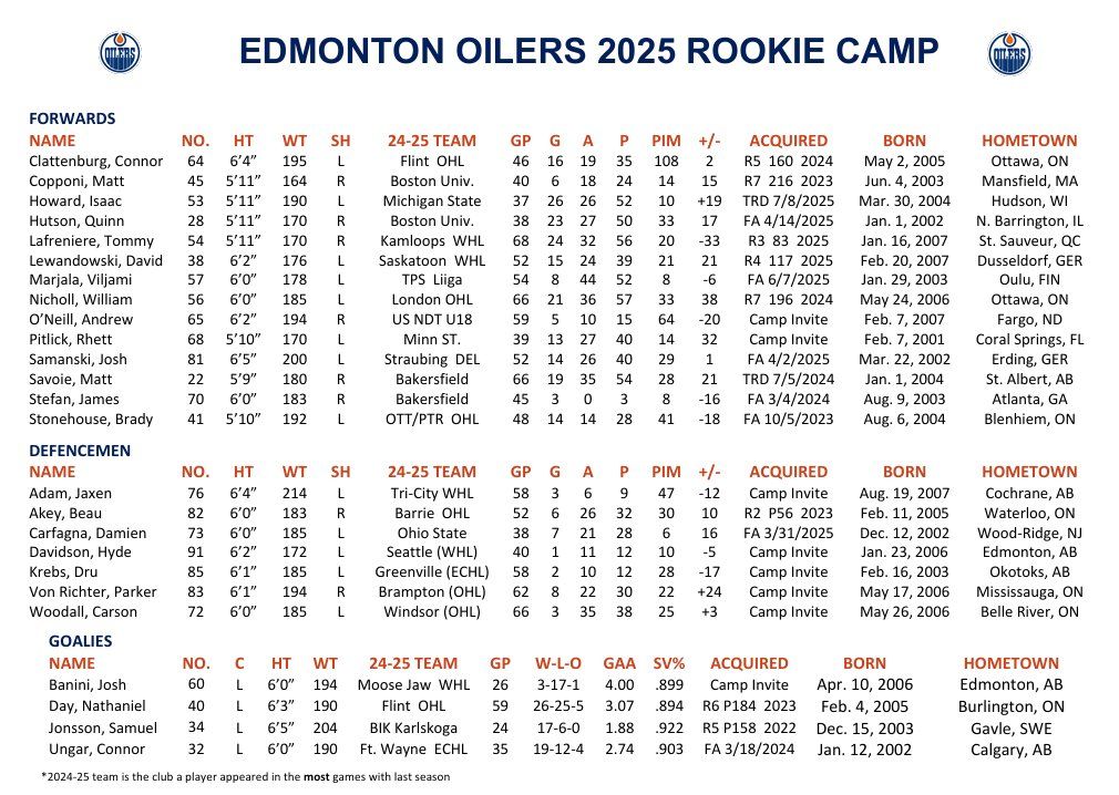 EDM Rookies lineup vs. CGY Rookies: