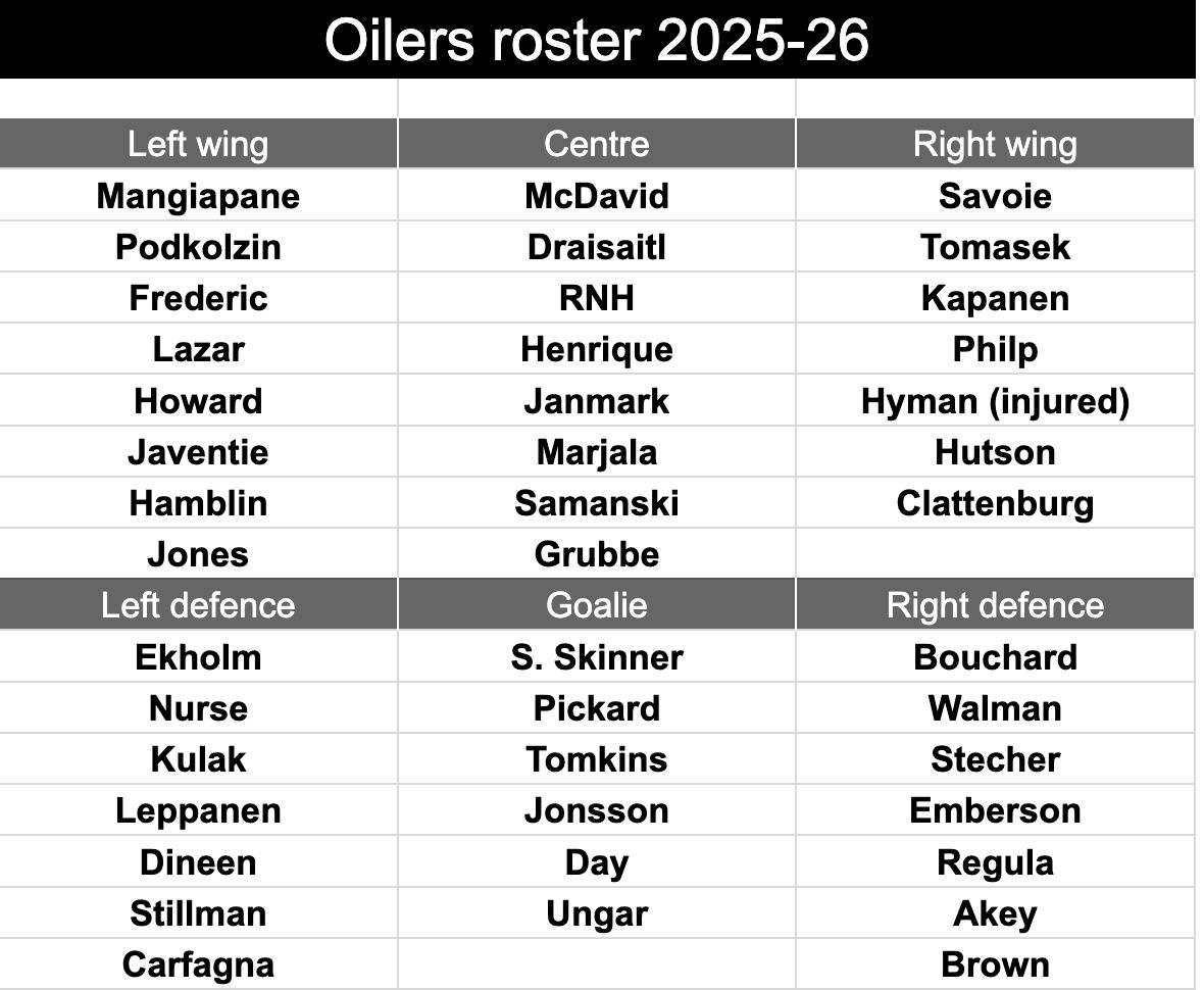 Because Savoie is fast and Drai works well with faster players who create time and space for him to work his magic, I could see Savoie on a line with Drai and two-way grinding machine Vasily Podkolzin to start. But due to Hyman’s absence, a path to the St. Albert kid playing with McDavid is open.