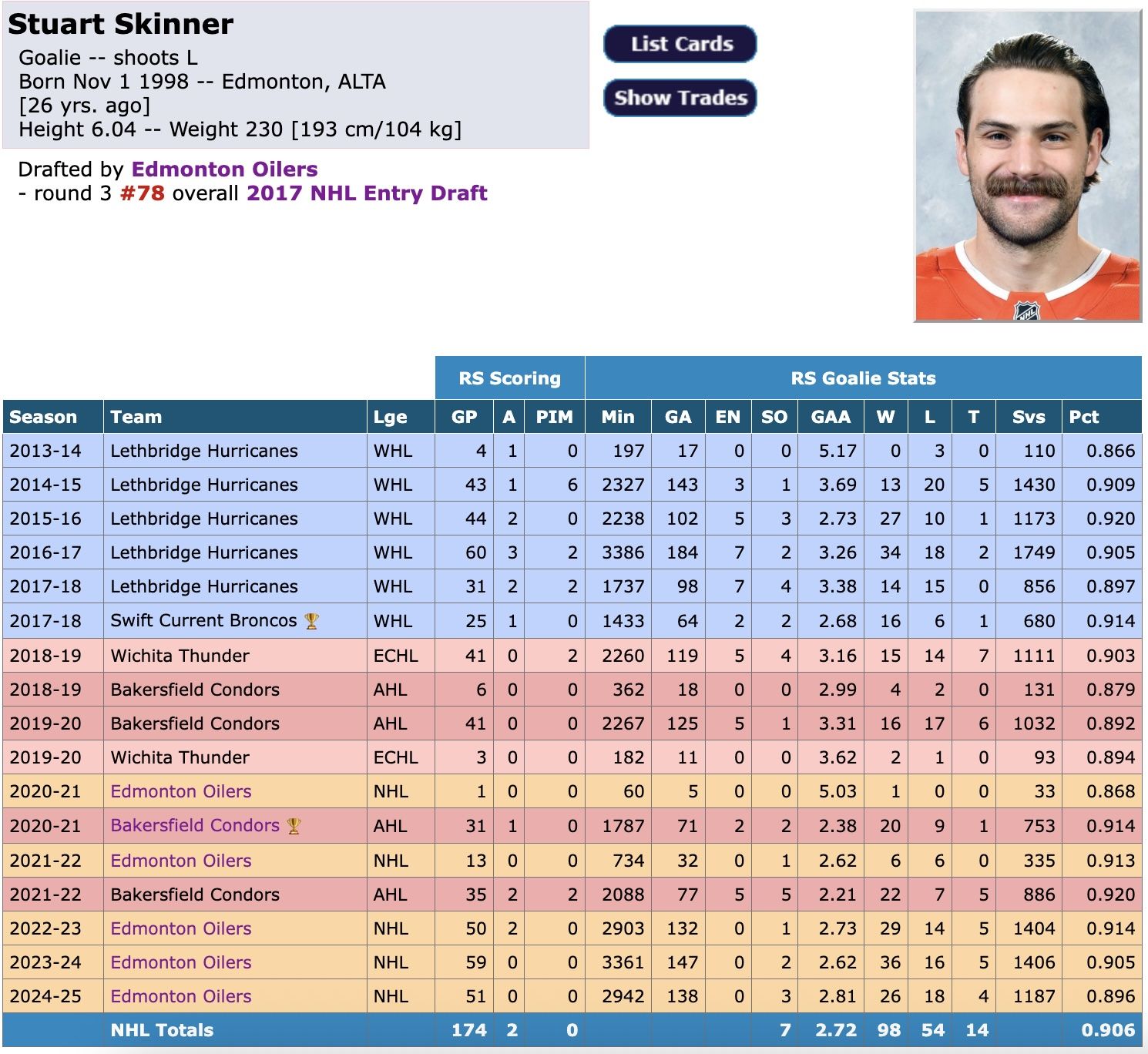 2. The other major consideration is that Skinner has been a bargain for the Oilers at $2.6 million per year. Do we really expected him to out-play higher paid goalies every single NHL playoff series? Is that reasonable expectation?