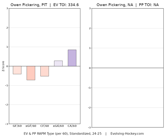 Pickering has the tools that make him likely to be an NHLer; he’s tall, mobile, and uses his rangy stick effectively in the defensive zone. Offensively, though, his development has lagged since being drafted in the first round. His puck decisions remain inconsistent, and he hasn’t shown the instincts to run a power play or generate offense at pace. While his junior numbers hinted at upside, those results haven’t translated at higher levels, and it’s becoming less likely they ever will.