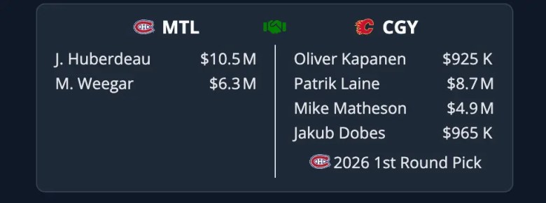 Verdict: No, not if Weegar is involved. Maybe there’s a way to make a Huberdeau deal work.