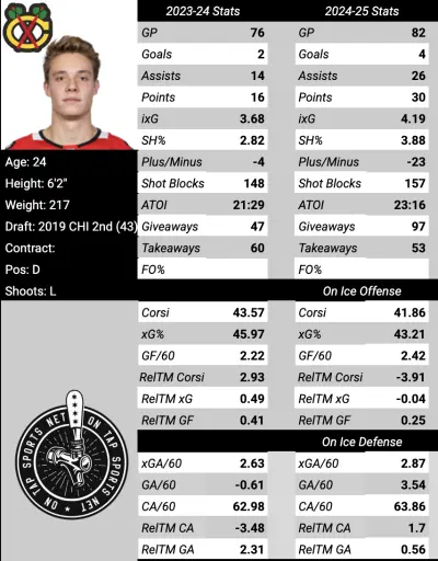 Vlasic, at age 24, is already a veteran presence on the Blackhawks’ young defense, with Rinzel making a permanent jump, and his projected linemate. Vlasic will be able to cover his offensive weaknesses while showcasing the elite defensive skills that secured his NHL spot and the recent contract extension. Perhaps Vlasic could even represent America at the Olympics come February.