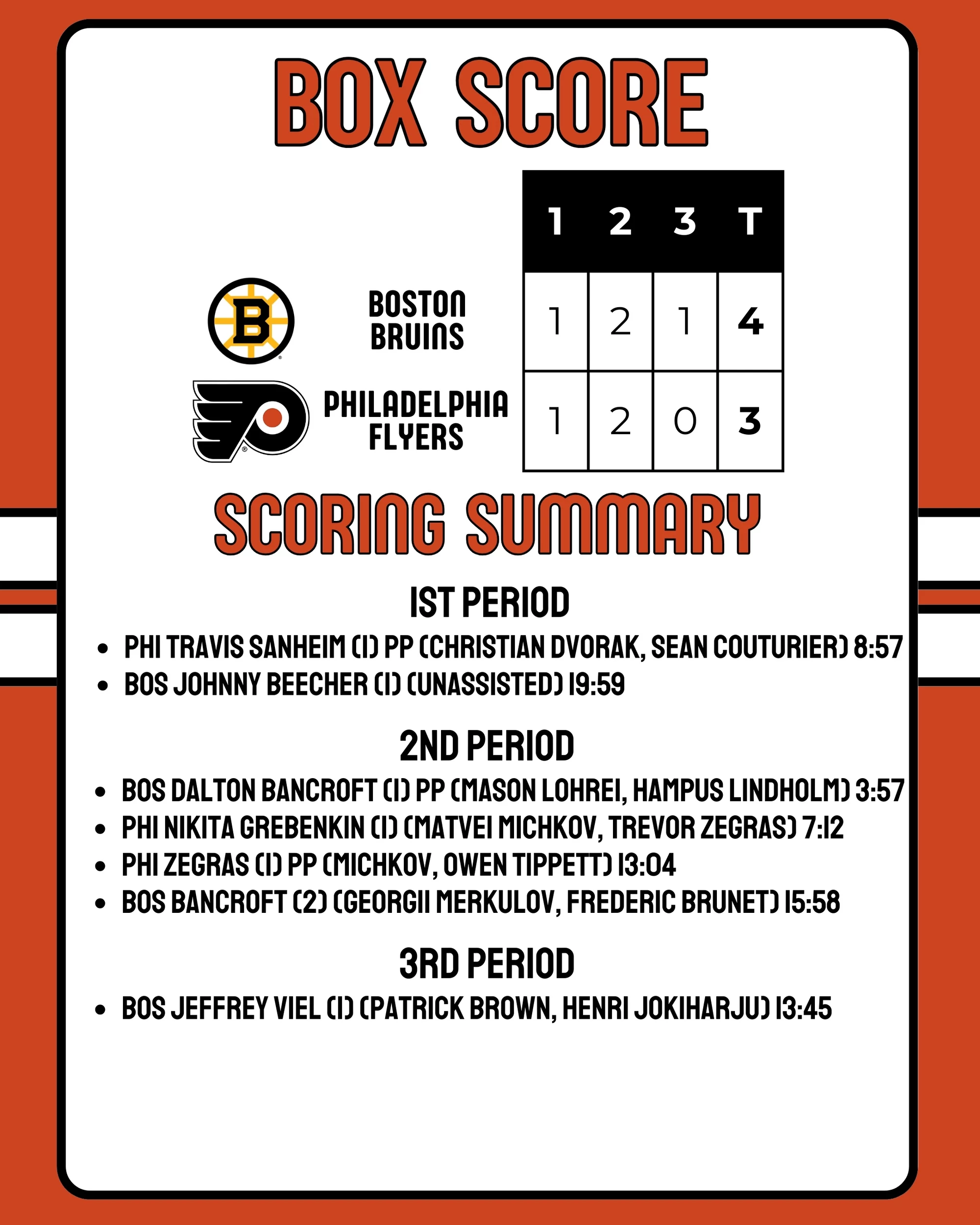 On home ice for the first time this preseason, the Flyers certainly iced the better roster of the two teams on Saturday evening. But the Boston Bruins took advantage of some sloppy play and were able to be the team standing at the end.