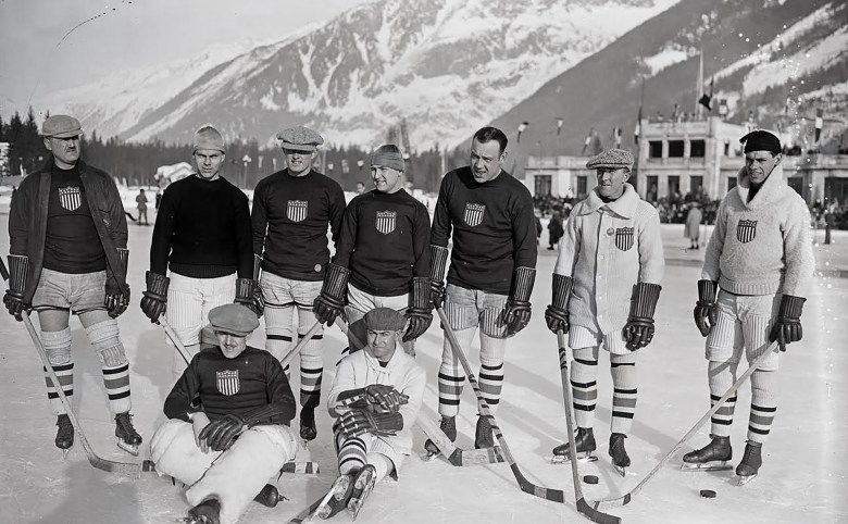 Clarence “Taffy” Abel, third from right, helped lead the USA hockey team to a silver medal at the 1924 Winter Olympics in Chamonix, France. Credit: Photo courtesy of the Jones Family Collection