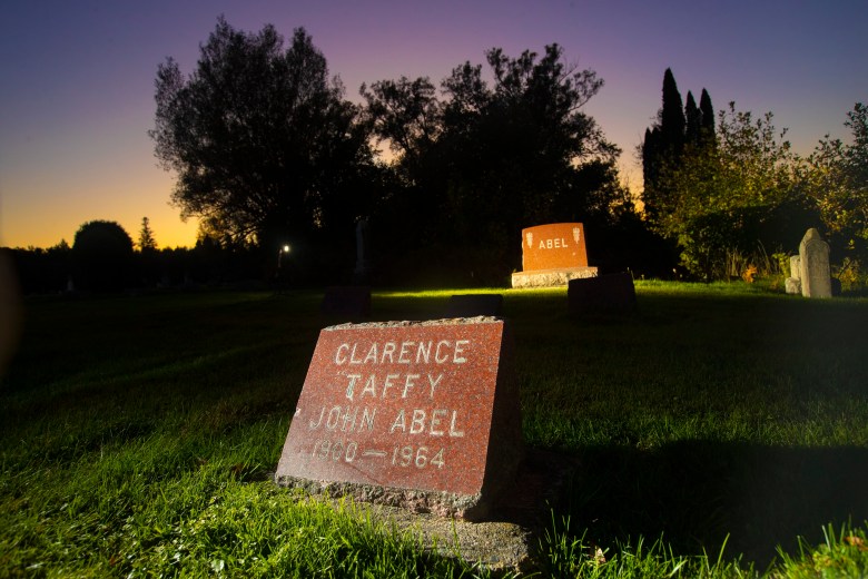 The headstone of hockey great Clarence “Taffy” Abel marks his grave at Riverside Cemetery in Sault Ste. Marie, Michigan, shown here on Sept. 28, 2025 in the Abel family plot. Credit: Charles Fox for ICT