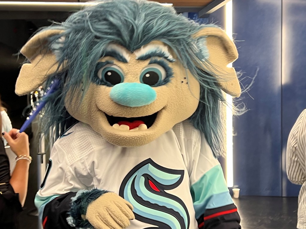 Although Buoy, a fun-loving troll, is not a player on the team, he is the Seattle Kraken’s mascot. While Buoy’s initial reception was divided, Buoy has since won over fans with his flowing locks, removable tooth, slight belly, and playful antics. The Sound Of Hockey crew are strong advocates for Buoy, and his endearing presence has become an integral part of the Kraken’s identity.