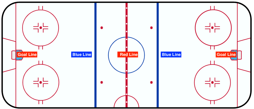 The Rink: The hockey rink is divided into three zones, separated by the blue lines: the offensive zone, neutral zone, and defensive zone. The goal is located at the back of the defensive zone.