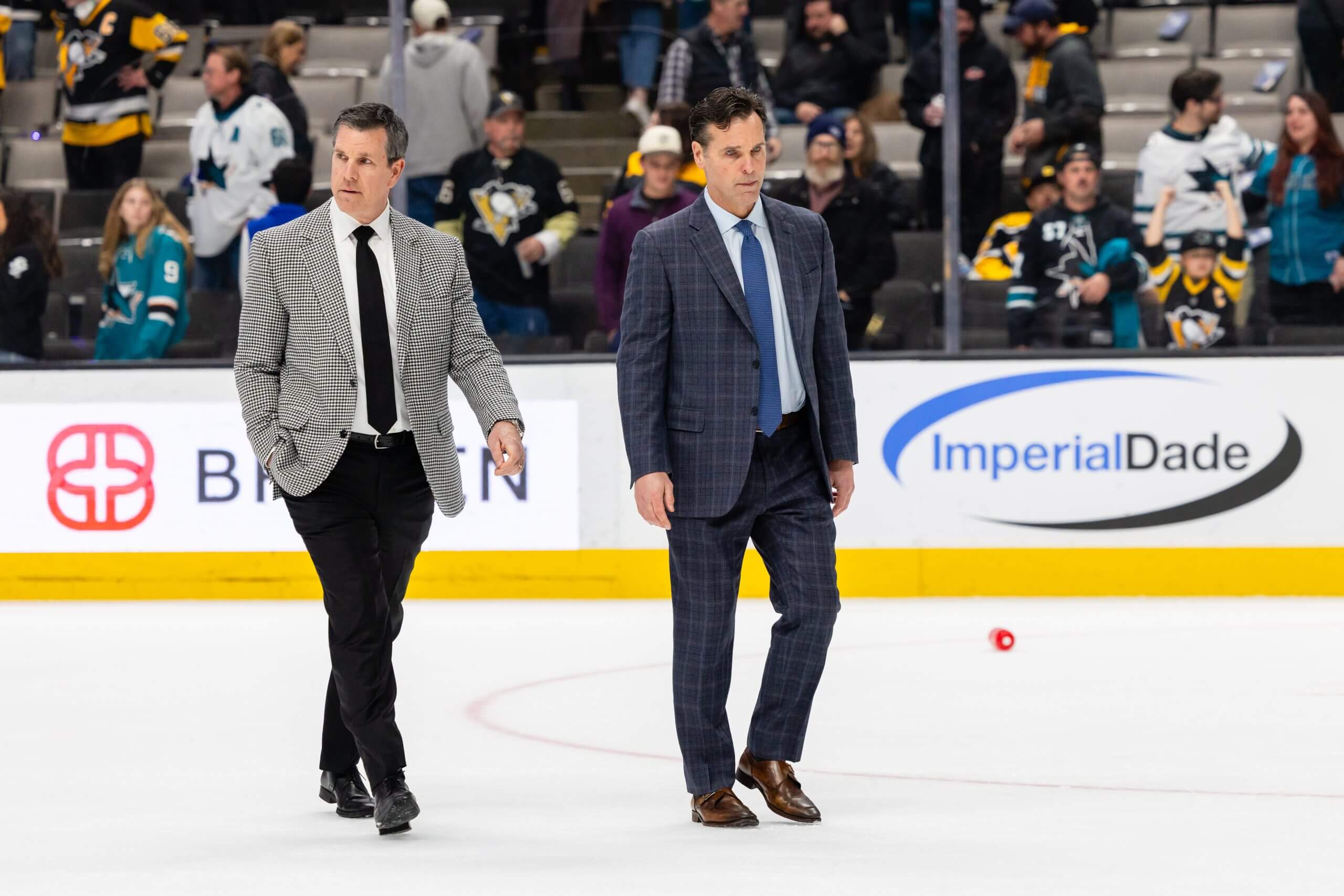 Sullivan and Quinn walk off the ice in San Jose after a game last season, when both were behind the Penguins' bench.