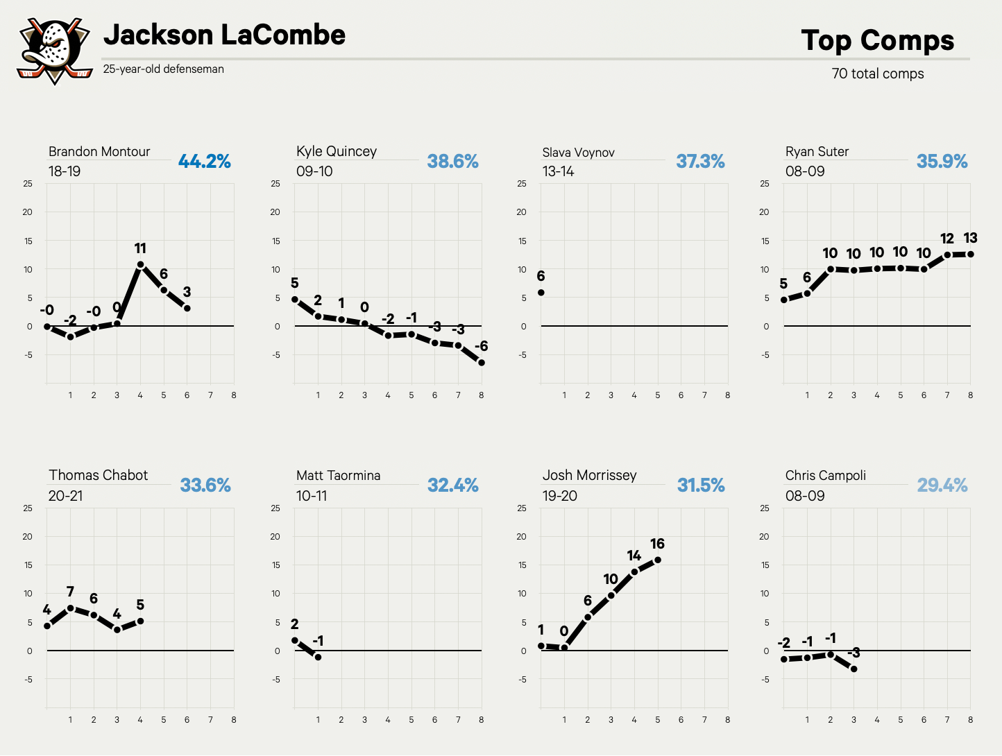 Every long-term deal carries some risk, even for a player in their mid-20s. In LaCombe’s case, it’s whether he follows the path of a Kyle Quincey, versus a Josh Morrissey or Ryan Suter.