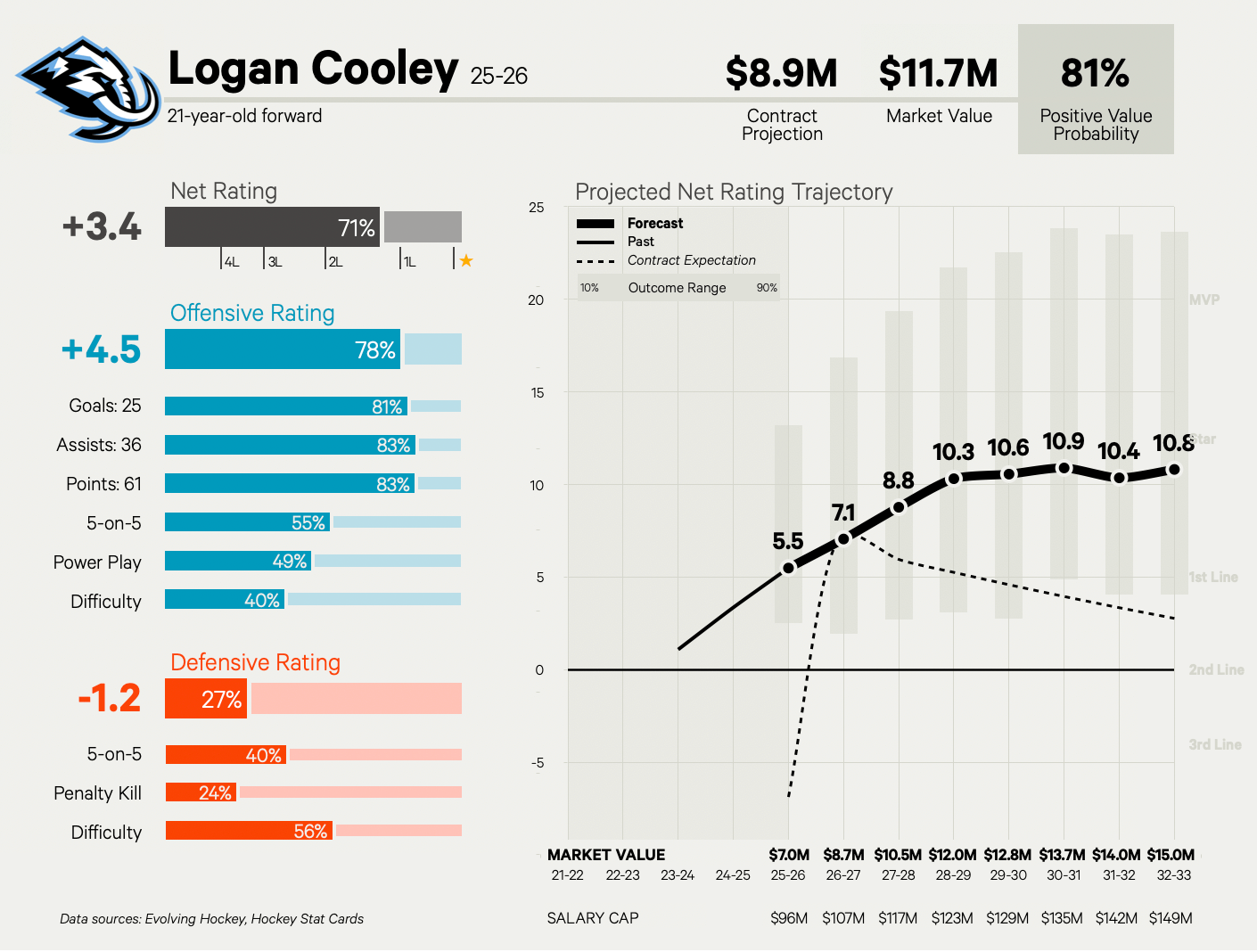 — Data via Dom Luszczyszyn, CapWages, Evolving-Hockey, HockeyViz, HockeyStatCards, All Three Zones and Natural Stat Trick. This story relies on shot-based metrics; here is a primer on these numbers.