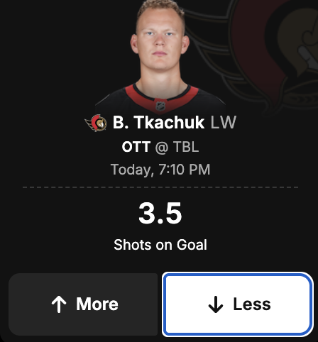 DraftKings Network projection: 54% likely to have LESS than 3.5 Shots on Goal