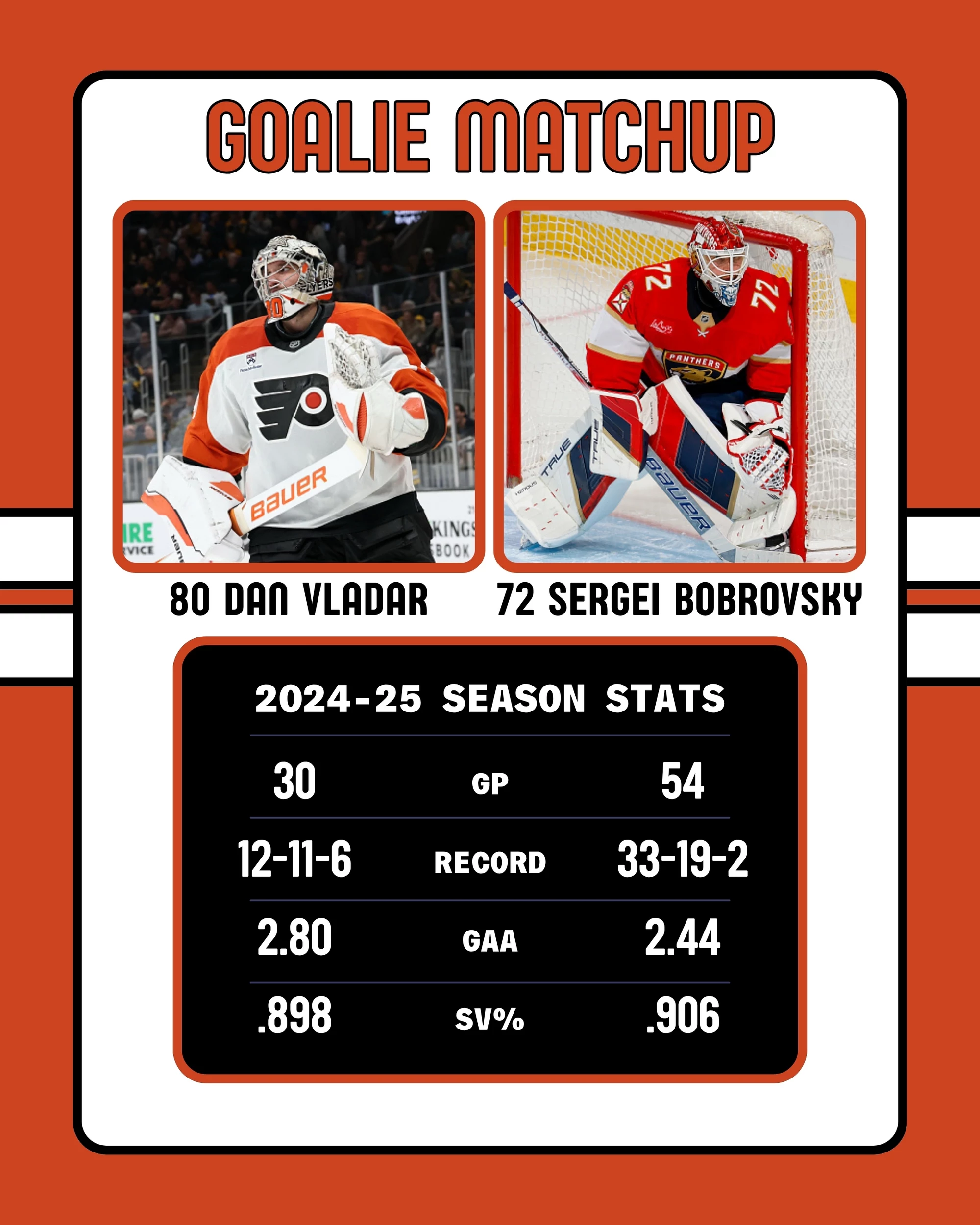 In a surprise, Dan Vladar gets the start for the Flyers in the season opener. The newcomer signed in the offseason had a 12-11-6 record last season in Calgary with a 2.80 GAA and .898 save percentage.